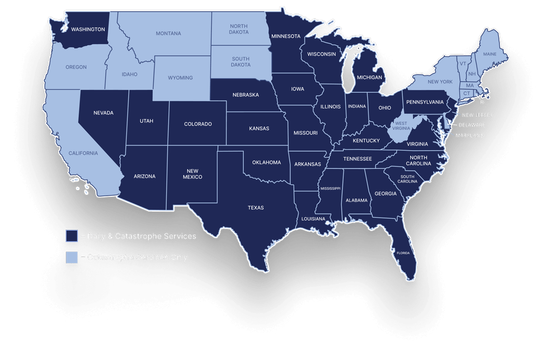 Patriot Claims proudly serves adjusters and carriers across the nation. Our extensive network of trained and certified inspectors allows us to provide reliable claim inspection services wherever you need them. Regardless of location, we’re ready to assist you.